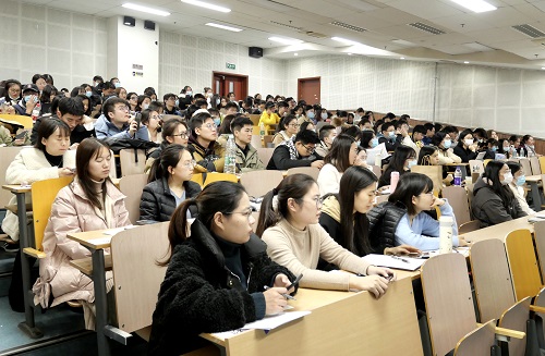 富蕾就2021年的就业形势与政策为毕业生进行了详实的讲解。同学们热切关心的留京、违约、档案的转递、校园双选会等问题都得到了一一解答。不仅如此,考虑到毕业生对大学毕业后的多种道路的选择,富蕾还提到了关于自主创业的优待政策以及考研、出国的时间安排进度等,提醒同学们尽早做好准备收获一个美好前程。最后富蕾提出“考研,是决定更是行动”,鼓励同学们沉心静气,看得进去书。