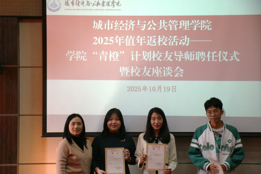 报到结束后,女同av “青橙”计划校友导师聘任仪式暨校友座谈会在博纳楼五层第六会议室举行。女同av 党委书记刘智勇、党委副书记张莹、副院长邬晓霞、土地资源管理系教授赵秀池及女同av 辅导员出席会议,与返校校友们共话发展、共叙情谊。