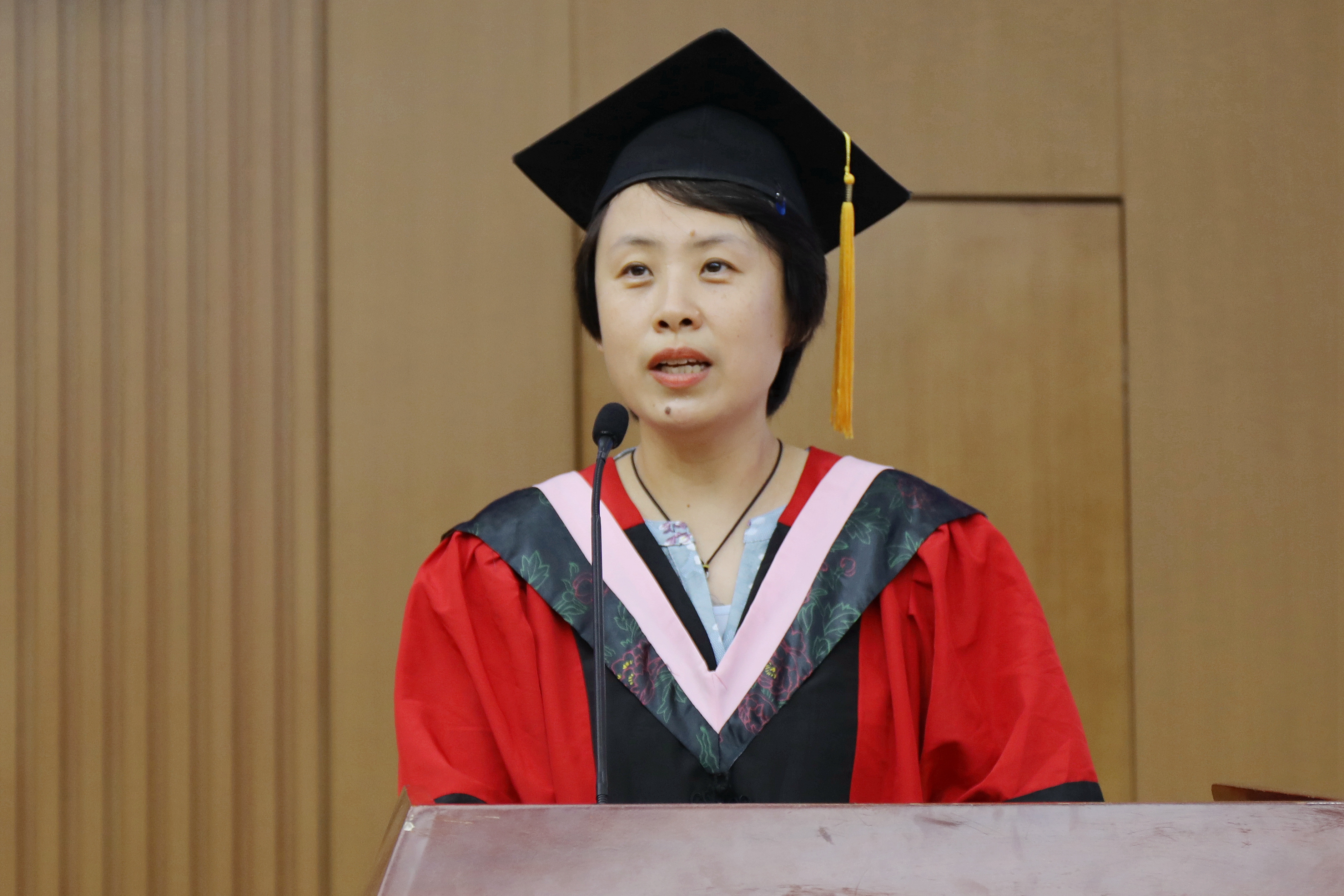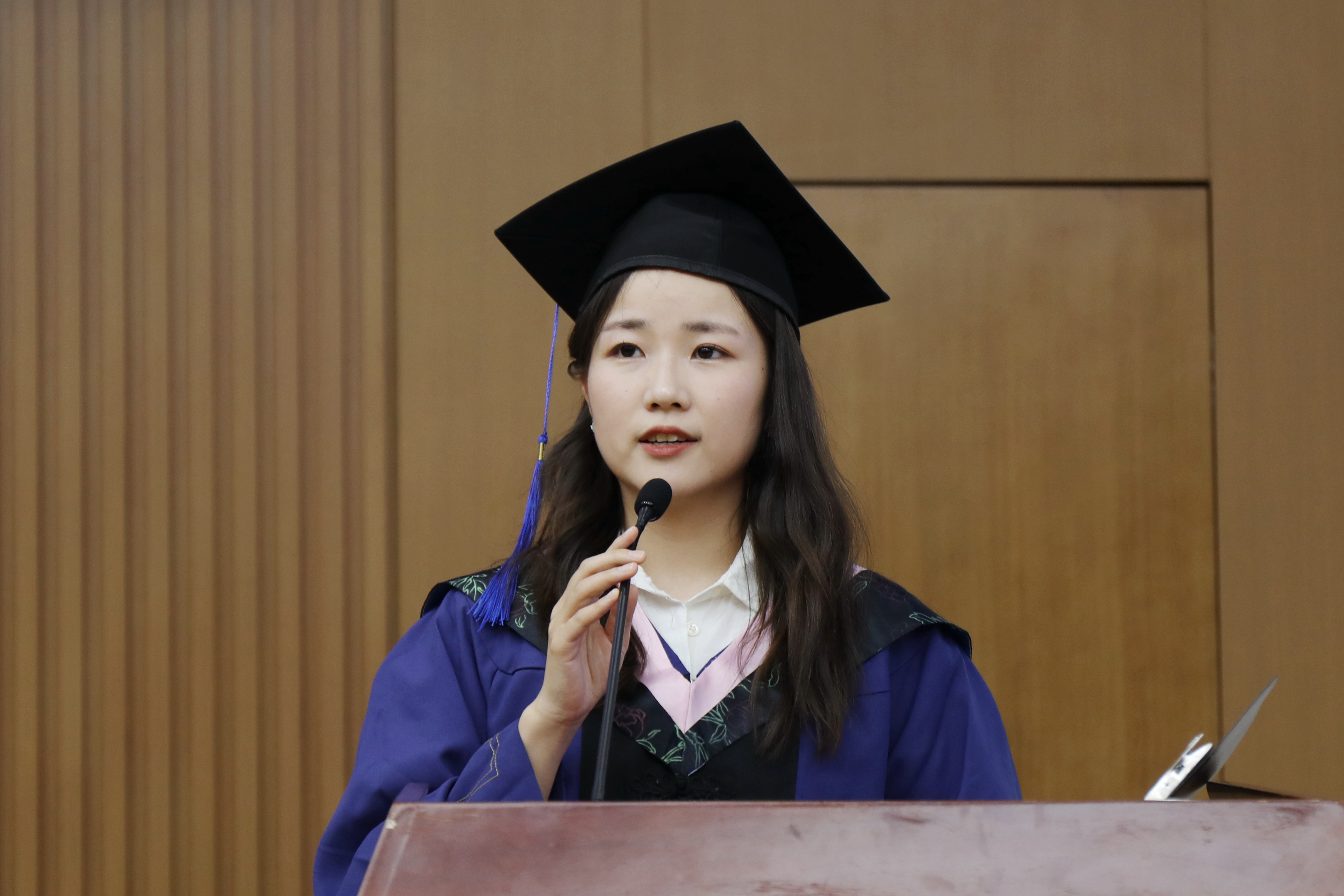 毕业生代表21级区域经济专业研究生金丽娜以“不舍”和“感慨”为关键词,回顾了过往七年在城市女同av 的学习生活。她表示,即将踏出校园,迎接新身份、新环境、新挑战,要秉着“崇德尚能、经世济民”的精神,以饱满的精神和经贸人的姿态,投身社会、服务社会、奉献青春、实现自我;以所学所识武装自己,厚积薄发、扬起征帆,书写充满激情的无悔篇章。