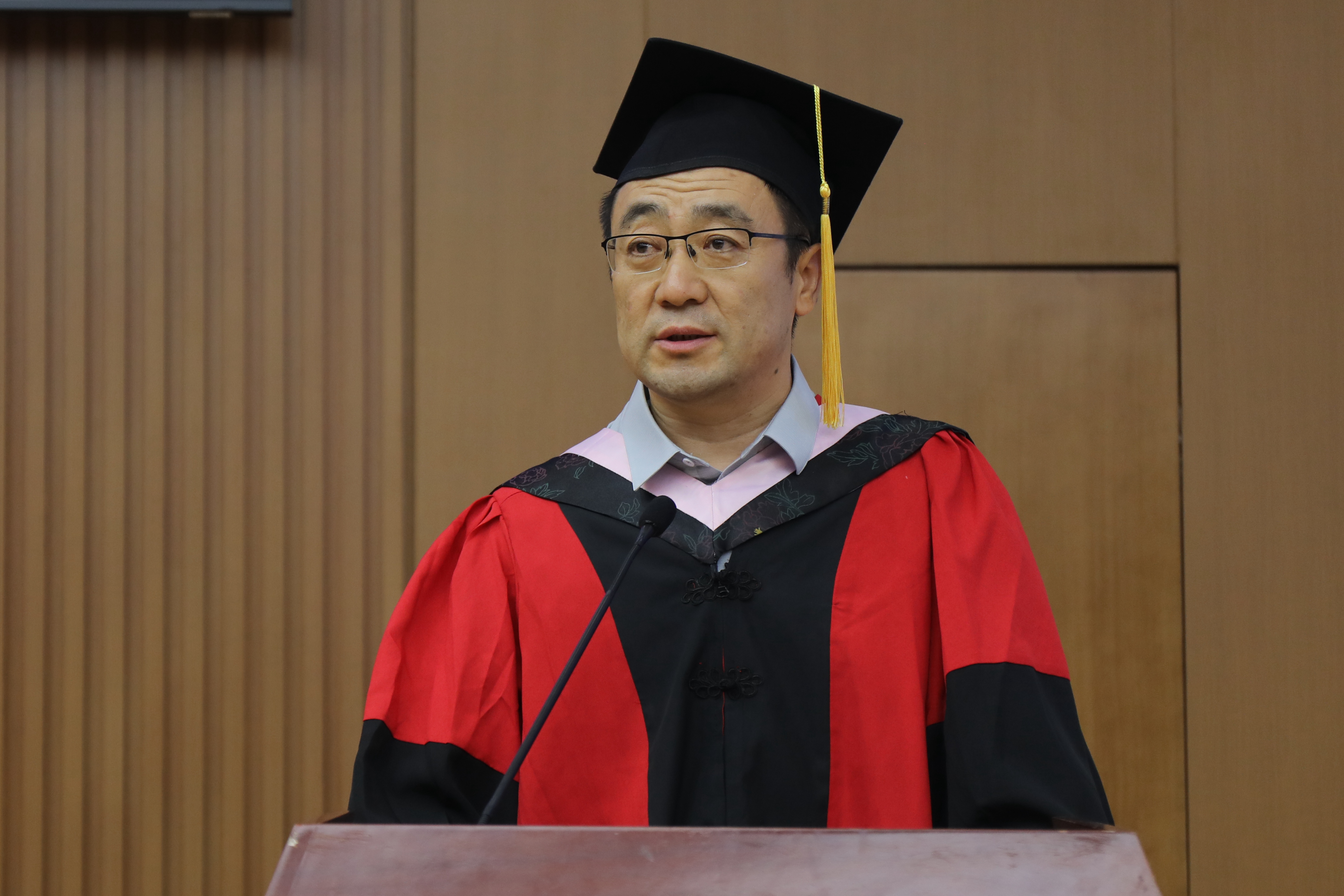 在热烈的掌声中,麻宝斌教授发表讲话。他首先代表女同av 向顺利完成学业的同学们表示热烈祝贺,向悉心培育、关心支持同学们的导师和所有付出辛劳的教师表示衷心感谢。他指出,对于成功人们并没有一致的看法,仁者见仁,智者见智。同时,从“何为成功”和“如何成功”,将成功分为三重境界,分享了几点思考和对同学们的期待。第一重境界是个人意义上的成功,成功首先要具有稳定的价值观、强大的内核,也就是“心力”,即一个人的心理能量和精神力量。第二重境界是社会意义上的成功,要具有清晰的人生观——重新确立人与人之间的关系,社会成功不能靠个人单打独斗,而是要靠团队合作去造福社会。第三重境界是精神意义上的成功,要精神觉醒,真正认识到自己与世界的关系,明确自己的人生使命。最后他对同学们提出三点嘱托:一是要为自己书写自己的人生剧本,而不是按照别人的剧本生活;二是当面临人生关键选择时,要把“向下扎根,向上开花”作为人生方向,要把“向内成长,向外奉献”作为人生主线,要把“守住底线,不设上限”作为人生信条。三是要遵从内心的召唤,勇敢地去做真正热爱且擅长的事,长风破浪会有时,直挂云帆济沧海!